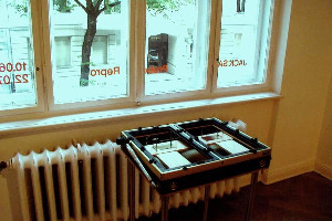 Galerie Schuster & Scheuermann Title: Probe/Repro Exhibition: One Man Exhibition Location: Galerie Schuster & Scheuermann, Berlin, Germany Materials: Wood, Gold Plated Proof Pins & Photographic Paper Dimensions: 10mX10mX10cm Date: June 10 - July 22, 2000 |