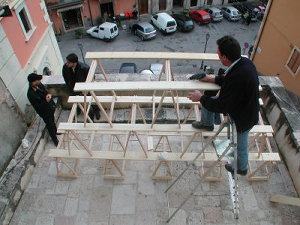 Cascia Project: Alpha/Beta A Project for Cascia based on the work & inventions of Nicola Zabaglia Location: Palazzo Carli, Cascia (PG), Italy Materials: Wood Saw Horses & Wood Planks Dimensions: 15 Units, Each Unit Sponsors: Provincia Di Perugia & Comune Di Cascia Date: 2003