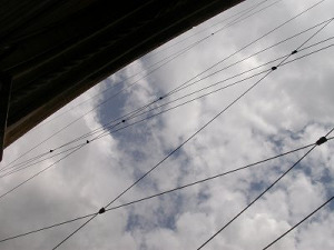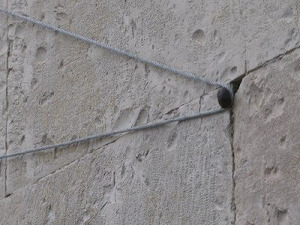 Point/to/Point Nail/to/Nail Wire/to/Wire In/to/Out Open/to/Close Pass/Present Use/Utility Site/Sight Cord/Accord Point/to/Point Location: Auditorium/Ex Church of San Domenico, Foligno, Italy Materials: Steel Cable and Photographic Paper Dimensions: Variable Article: Segni nella città, in Italian Date: April - May 2004