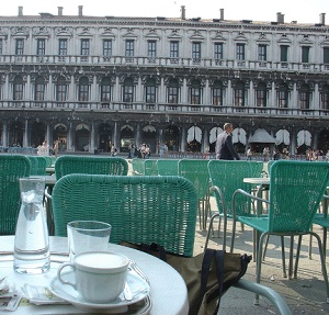 Caffè Quadri Presentation/Performance: O/Ring/O Event: On the occasion of the 54rd Venice Biennale Location: Caffè Quadri, Piazza San Marco, Venice, Italy Materials: Ink, Coffee and ceramic ring on Photographic Paper/Cliché-Verre Sponsor: STIFTUNG FÜR MEDIENKUNST&PHILOSOPHIE, Berlin Germany Date: Friday, June 3, 2011 The seventh appointment for Jack Sal, who since 1997 on the occasion of the Biennale d'Arte in Venice, has made his performances at the historic Caffè Quadri. O/Ring/O conceived for 54th Biennial and sponsored by STIFTUNG FÜR MEDIENKUNST&PHILOSOPHIE, Berlin Germany makes use of three elements: an artwork of ceramic-lustro, photographic paper, and coffee. A circularity that refers to the temporal. A Venetian tradition dating back to the 16th century, connects the ceramic designed by the American artist, which presents the shape of the Doge's ring and, at the same time, the ritual performed by the Supreme Leader in launching the ring into the lagoon, to celebrate the marriage of Venice to the sea. The photographic paper, a constant in artistic research of Jack Sal and coffee are connected to the idea of time. Coffee, in particular, has a strong connection with the concept of space/time within these performative actions: the arrival of the coffee, and its consumption by the artist delineates the duration of the performance.